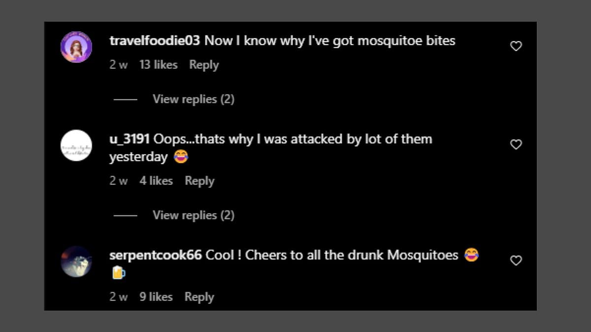 Netizens seemed to be not really convinced with the study's claim that beer drinkers become attractive to mosquitoes. One of the users reacted by saying he has never tried beer or any form of alcohol but is still prone to mosquito bites. His comment read, "Never drink alcohol but mosquitoes love me so much." Another user, soon, hilariously wrote, "Mosquito attract my son n he is 4 years old … now I have 2 think from whr he is getting, lol."