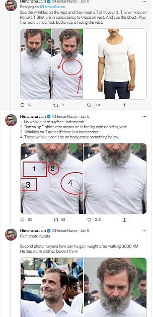 Meanwhile, political analyst Himanshu Jain also hinted Rahul Gandhi's t-shirt buzz to be fake. He shared a series of tweet to suggest that the Congress leader wears thermals or another layer of clothing to feel warmer. The tweet read, "...He has warm clothes below I think."