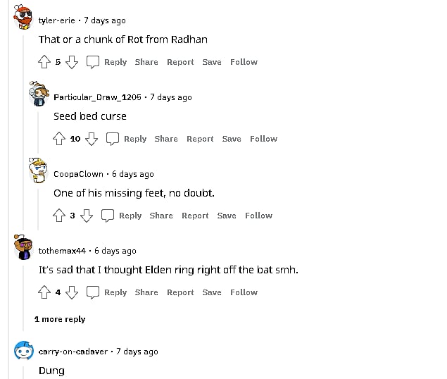 The comments section has flooded with people guessing over the unidentified object. Some have just taken to express their experienced mixed feelings over the image rather than trying to say what the substance could be.