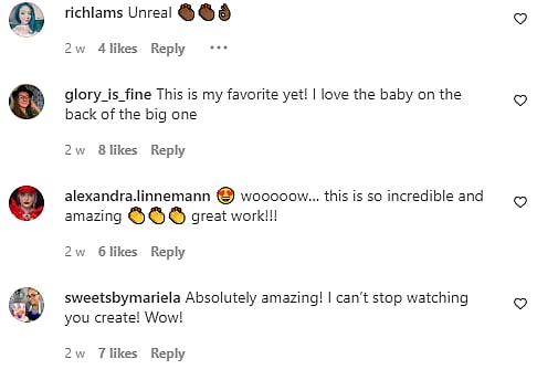 In the video shared by Amaury, we can see him gracefully carving a chocolate chameleon. The Instagram post was captioned to read, "Mother and baby chilling in the chocolate rainforest!"