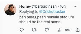 A Twitter user wrote, "The entire stadium is littered with Pan Bahar ads, as if the stands weren't ugly enough in design. Shame that we're even playing here, an absolute eyesore...(sic)" "Arun Jaitley stadium should now officially be renamed as Pan Bahar Stadium," the internet slammed the wide display of Pan Bahar adverts in the premises.