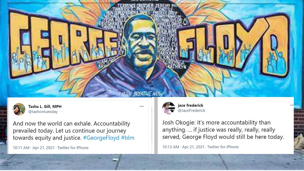 Vice-President Kamala Harris wrote, "Todayβs verdict brings us a step closer to making equal justice under law a reality. But the verdict will not heal pain that has existed for generations. It will not take away the pain felt by the Floyd family. Thatβs why we must recommit to fight for equal justice."