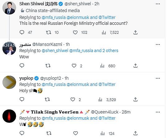 Seeing the tweet from the official account of the ministry, netizens wondered whether its for real. "This is the real Russian Foreign Ministry official account?" asked Twitter user Shen Shiwei. Check reactions: