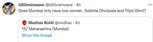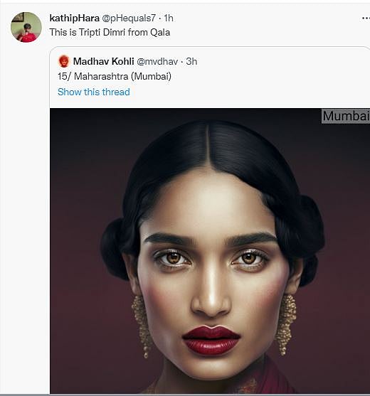 The now-viral photo reminded most people about the lead character from the recent film Qala. "This is Tripti Dimri from Qala," the reply section most-commonly read. Others suggested the 'Mumbai woman' closely matches the looks of Suniel Shetty's daughter Athiya or Telugu actress Sobhita Dhulipala.