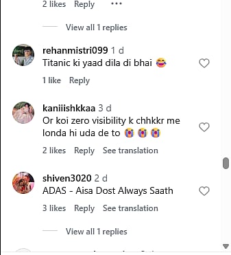The clip has racked up over 11 million views, but the reaction online has been largely critical. Many users pointed out the obvious danger, joking that in case of an accident, the person on the bonnet would be hit first. Others sarcastically compared the scene to the iconic Titanic pose, while some warned that the cold alone could be life-threatening. The viral video soon tunred into a memefest in the comment section.