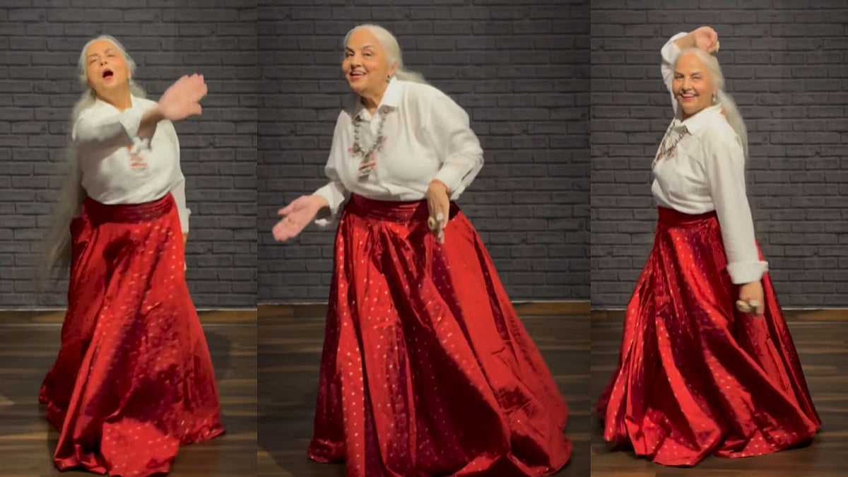 'Dancing Dadi' is back with another video, where she is seen grooving to one of the popular Bollywood beats. Identified as Ravi Bala Sharma, the elderly woman is known for uploading dance reels on social media. In one of her latest videos, she was seen performing to the 'Saree Ke Fall Sa' song. She wore a white shirt and red lehenga to hit the dance floor, ditching the expected costume (a saree).