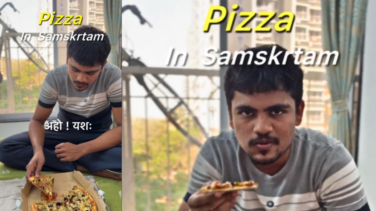 A viral video has sparked a wave of amusement and curiosity across social media, as it throws light on the Sanskrit term for "pizza." The video features Yash Salunke casually enjoying a pizza at his house, when someone off-camera asks him about the name of the dish in Sanskrit. Without taking a second, Yash confidently replies, "Pistajam."