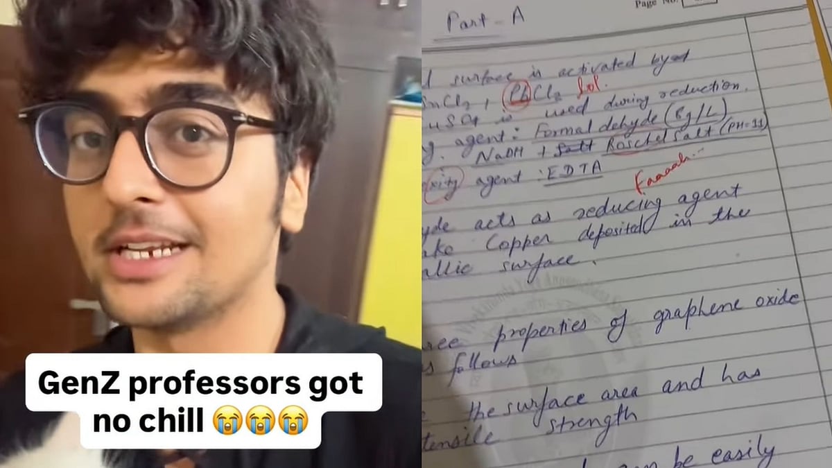 The video, shared on Instagram by user Kartikey Tiwari, captures a light-hearted moment involving a newly appointed chemical engineering professor from the Gen Z generation. The clip opens with the person filming jokingly claiming that Gen Z individuals might be “too savage” to become professors, before revealing how exam papers are being evaluated.