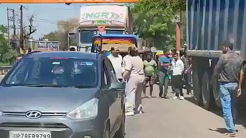 A dramatic scene unfolded on the Kanpur-Sagar National Highway in Hamirpur, Uttar Pradesh after a tractor bumped into a car, leading to a woman stepping out of the vehicle and yelling at the tractor driver. She was reportedly identified as the wife of a senior district-level officer (DM GIC), who attempted to display power after the two vehicles collided. Enraged over the tractor hitting her car, she confronted the tractor driver by grabbing his collar and shouting at him in the middle of the road.