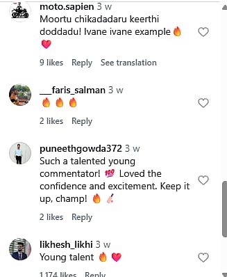 The comments section quickly filled with admiration. Many users applauded his timing, diction, and cricketing insight, while others joked about major broadcasters already lining up to sign him. One user commented, "Such a talented young commentator! Loved the confidence and excitement. Keep it up, champ!"
