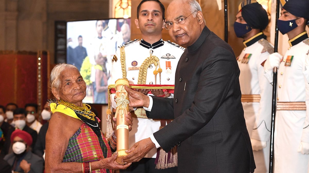 The official Twitter handle of the President of India tweeted, "President Kovind presents Padma Shri to Smt Tulsi Gowda for Social Work. She is an environmentalist from Karnataka who has planted more than 30,000 saplings and has been involved in environmental conservation activities for the past six decades." Gowda belongs to Halakki Tribal in Karnataka and is also known as the Encyclopedia of Forest due to her vast knowledge of diverse species of plants and herbs.