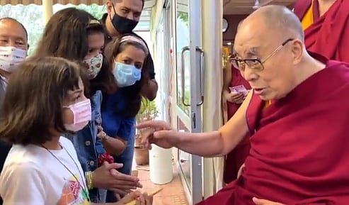 During his interaction with the group, a little girl asked him: "How can we speak to god?" A video of the same was posted by Tibet.net