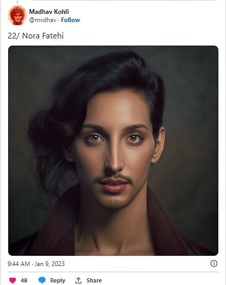 Kohli shared a series of images that portrayed popular personalities' appearance as of how they would look if they the opposite gender. "Gender is a spectrum. Reconstructed some Popular faces using ai (sic)," the tweet was captioned.