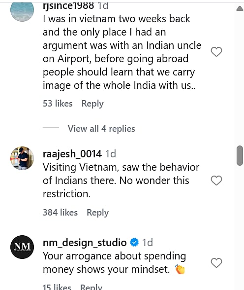 Comments ranged from calls for better global awareness and respect for Indian travelers to introspective takes on improving etiquette and cultural sensitivity while visiting other countries.