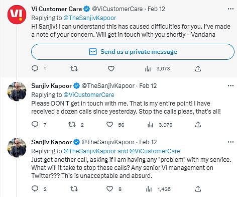 Did this tweet solve his problem and stop Vi from calling him? Twitter handle of Vi replied him and wrote, "Will get in touch with you shortly." Kapoor who wanted to cease the talk and switch his network had now received a tweet suggesting that there would be more calls to help him solve the matter when he literally was done with the service and had planned to get to another network.