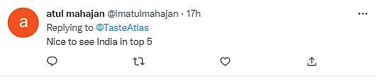 A Twitter user shared his ratings and called it to be a "realistic rank list." According to him, the ranking goes as follows: Indian, Japanese, French, Italian, and Brazilian foods. However, not all think alike. Some were happy to see India make it to the list.
