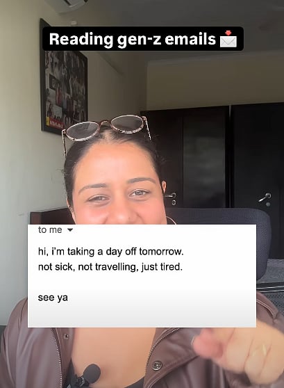 From requesting leave because the “vibes are off” to declaring, “Not sick, not travelling, just tired,” the emails were anything but traditional. The now-viral clip, shared on Reddit by user Aparna Upadhyay, has already crossed over 167,000 views within a day, with netizens divided between amusement and disbelief.