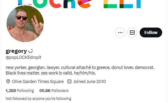 It was also noted that his X-rated Twitter account mentioned himself as a "lawyer" and read alongside "sex work is valid."