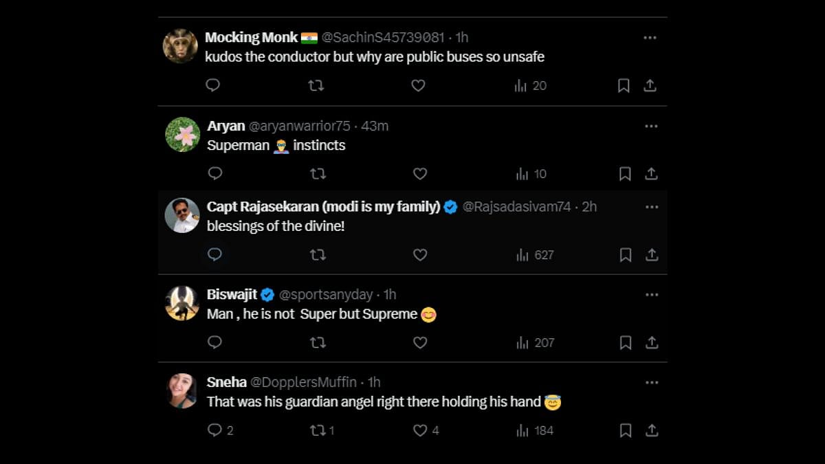 The internet is lauding the KSRTC bus conductor for his instinct or observation, which made him rescue the passenger from falling off the moving transport. "That was his guardian angel right there holding his hand," wrote an X user after the video surfaced online. Another netizen replied to the viral video and called it "Spiderman reflexes."