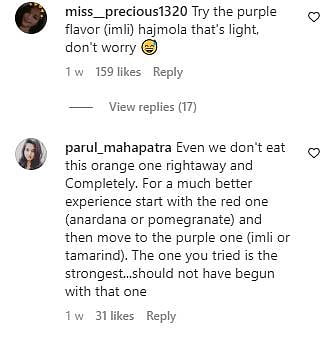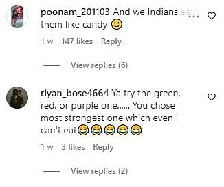 Desi netizens aren't in agreement with his feedback. They want him to try the other flavours of the item, especially the suggestion goes for the purple one. The video shows him eating the yellow-packaged digestive pill.