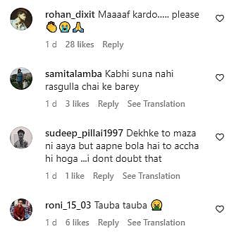 Is the internet impressed with the preparation? Hard luck! The comments section read, "Maaaaf kardo," as netizens expressed their no to try the 'Rasgulla Chai.'