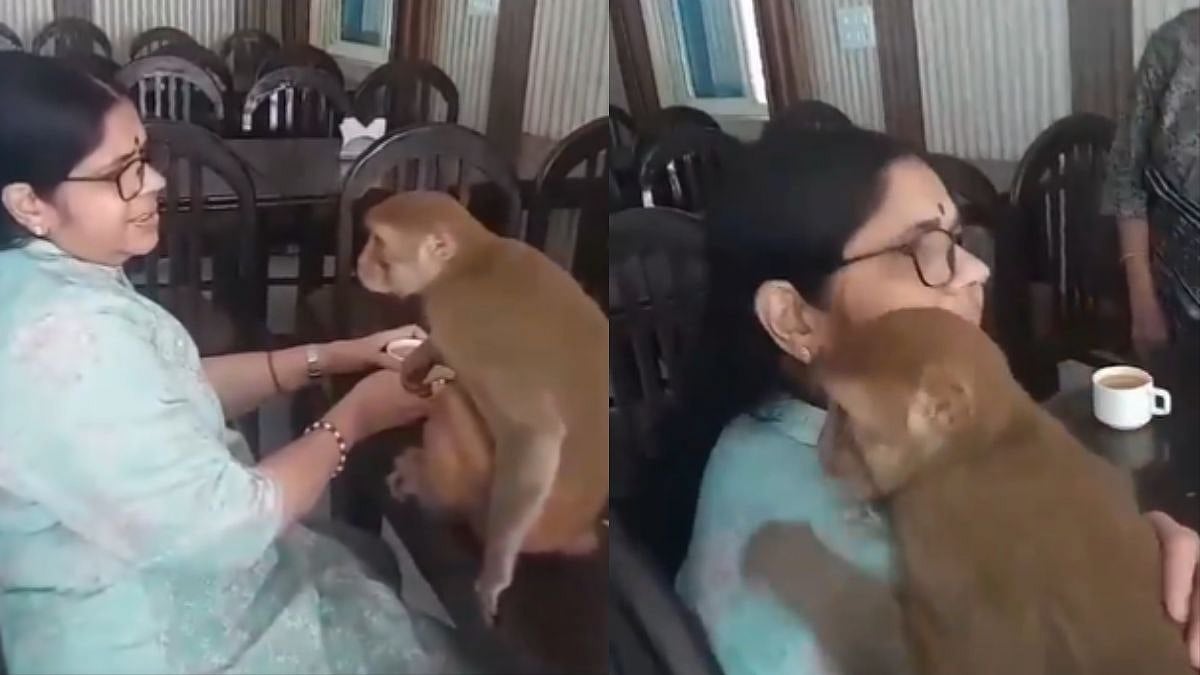 Internet is a home to many videos that hold the potential to add a smile on your face and make you feel better. One such is this video of a woman subtly interacting with a monkey. It records a couple of people singing Lord Rama bhajans at a food stall in the presence of a monkey. When a monkey visited their table, they didn't fear or shoo away the animal and instead started reciting holy hymns for it.