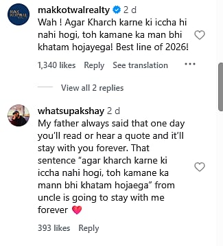 Social media users flooded the comments with praise, calling the moment deeply relatable. Many admitted they still seek their parents’ approval for major decisions, regardless of age or success. Others appreciated the rare glimpse into a money conversation rooted in trust, vulnerability, and emotional grounding, a contrast to the flashy, confidence-driven narratives often seen online. Users called it "Best line of 2026!"