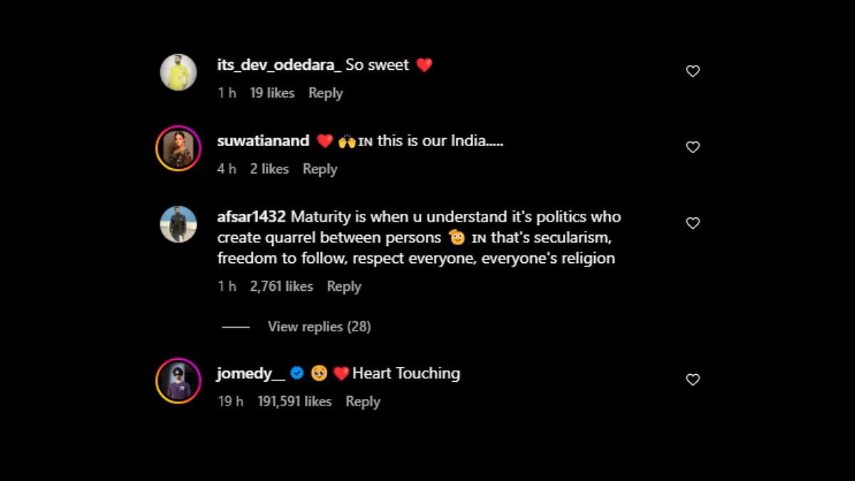 On the occasion of Krishna Janmashtami, netizens reacted to the video and called it the "Video of the day." "Maturity is when u understand it's politics who create quarrel between persons 🇮🇳 that's secularism, freedom to follow, respect everyone, everyone's religion," read a comment. Many users commented by terming the video to be "sweet" and "heart touching."