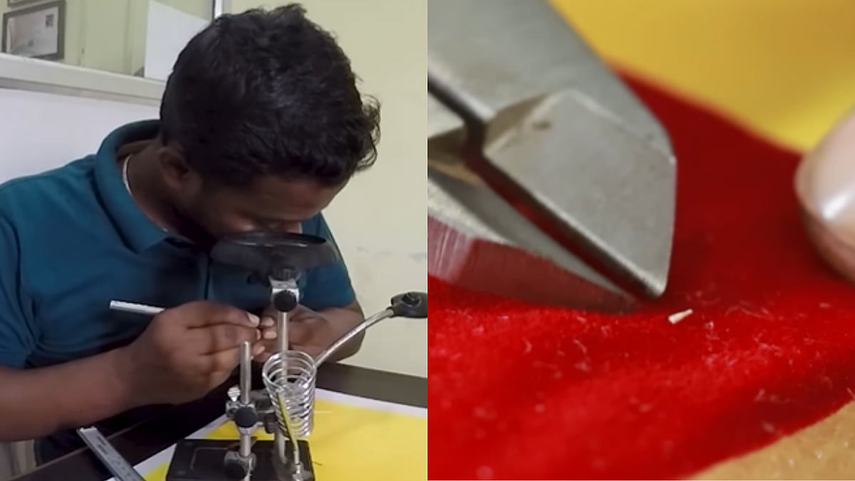 The micro-sculptor, who is renowned for creating art on chalk pieces and miniature objects, spent several days crafting the wooden spoon under a magnifying lens using specialized micro tools. The process required steady hands, immense patience, and exceptional focus.