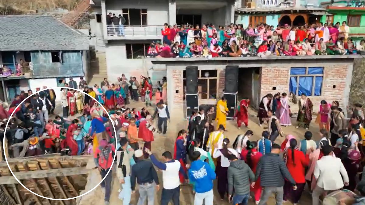 A wedding celebration in Himachal Pradesh’s Chamba district turned into a frightening scene after the roof of a house suddenly collapsed during the function, injuring more than 20 guests. The incident, which reportedly occurred two to three days ago, has now gained wider attention after drone footage capturing the exact moment of the collapse surfaced online.