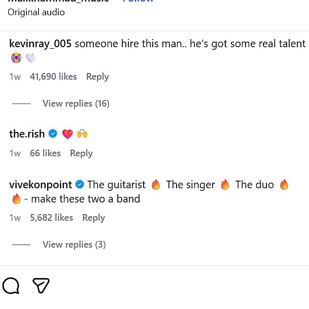 One user commented, “The guitarist, the singer, the duo - make these two a band.”