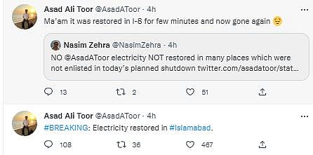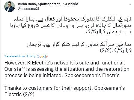 Confirming the power outage, Pakistan's Geo News reported earlier on Monday that several areas in Karachi and Lahore were without electricity. Pakistani Journalists, a K-Electric official (Pakistanโs largest power utility), and commoners constantly tweeted updates on social media.