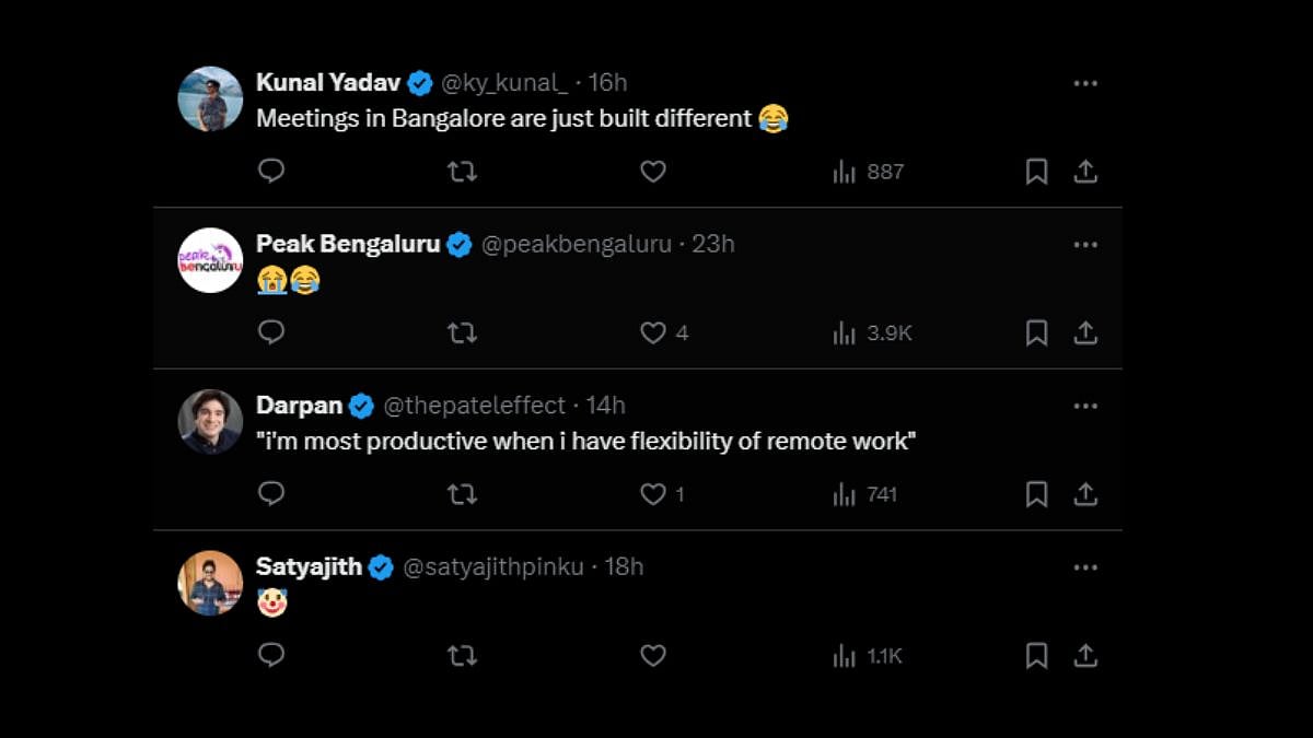 "These are the kind of people who made companies rescind Work From Home policies. Such a sad state. it creates an impression that people in India have no work ethics," said an X user, while another wrote, "Deciding which shoe to throw at organizer of such useless meetings." "Meetings in Bangalore are just built different," netizens laughed.