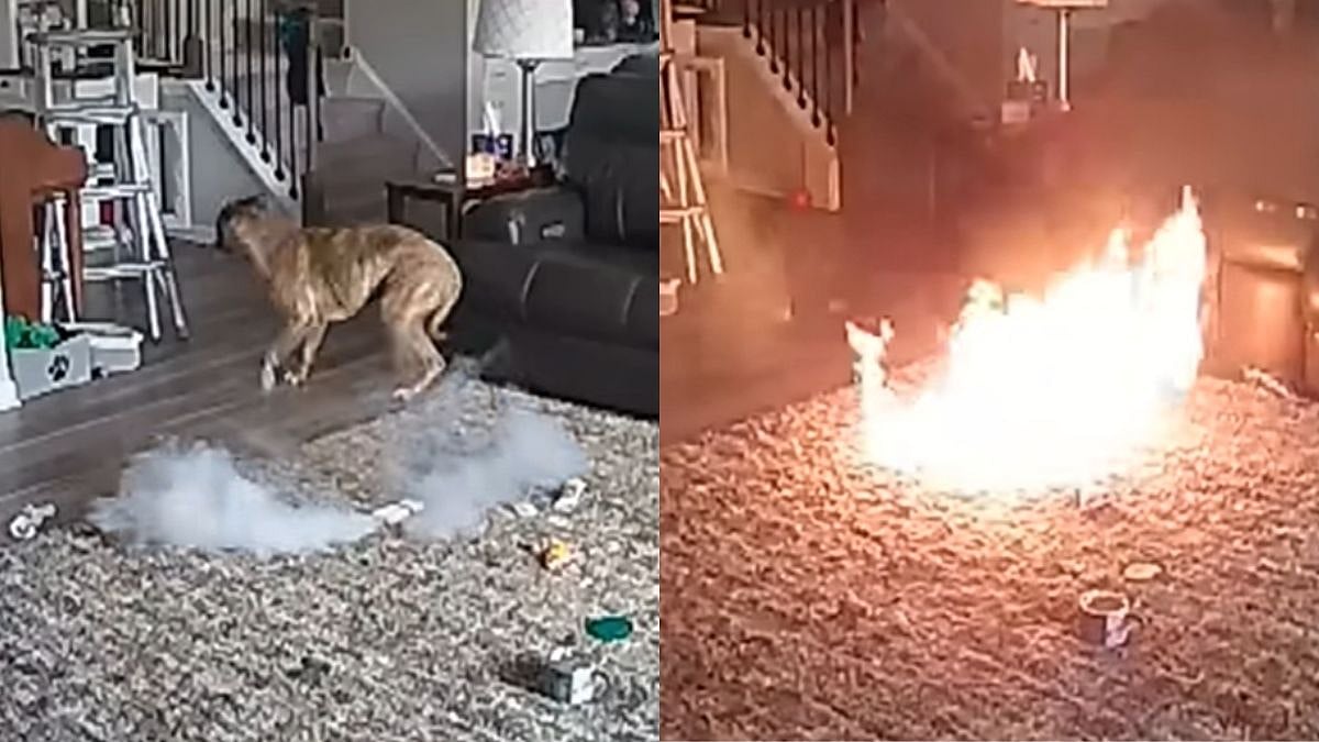 In the viral video, the dog can be seen chewing a lithium battery, found in the living room. Apparently, the family members were out, and the dog decided to chew on the battery, which was recently unplugged after charging. After continuous chewing, the battery sparked, causing smoke, followed by a massive burst of fire.