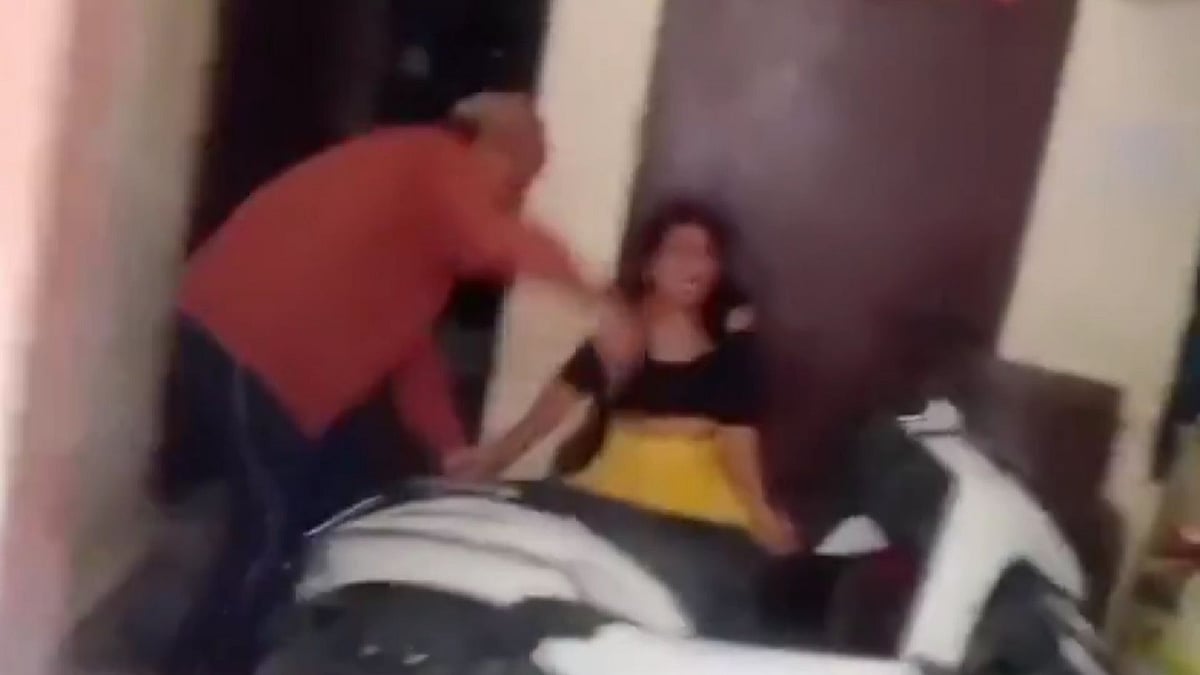 The viral clip shows an elderly man forcefully dragging a woman toward the gate of a house while she cries and attempts to escape back inside. The woman can be heard pleading for help as the man allegedly assaults her in full public view.