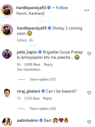 In the pictures, Hardik Pandya can be seen posing alongside MS Dhoni to recreate the Jai-Veeru pose from Sholay. He captioned the post as, "Sholay 2 coming soon."