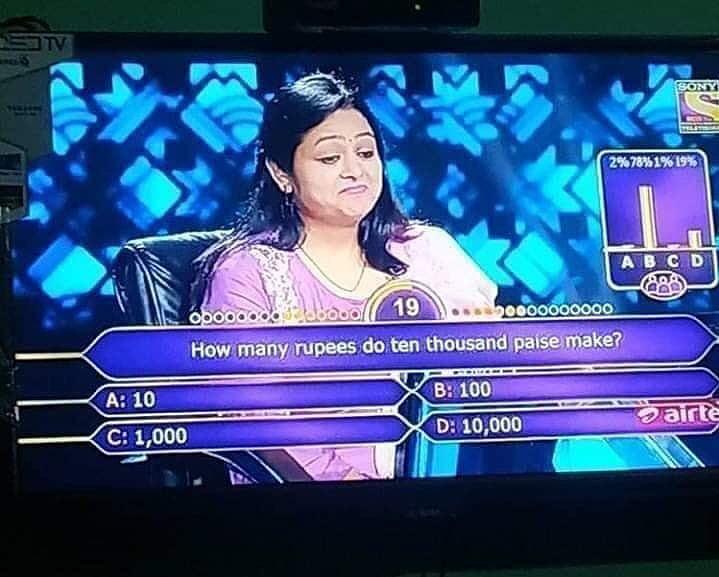 The question read, “How many rupees do 10,000 paise make?” Along with the host, everyone got surprised when a math teacher was unable to answer such a simple question.