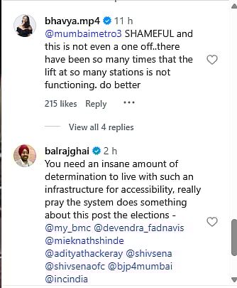 Another directly called out authorities, saying, @mumbaimetro3 SHAMEFUL and this is not even a one off… there have been so many times lifts at multiple stations don’t function. Do better.