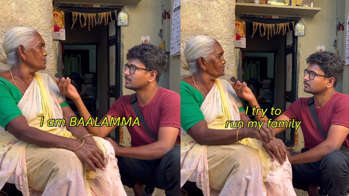"I am Baalamma. I work as a house help. I start at seven in the morning and only return home at 3 pm," the elderly woman says. "This is how, I somehow manage by doing the work I can," she tells Ashik while pointing out that the money salary she receives isn't enough to run a family. "I take debts and try to survive with it," she adds further.