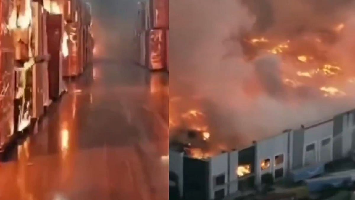 A video circulating widely on social media appears to show a man walking through the warehouse igniting stacks of products. Law enforcement officials believe the footage is authentic and are examining it as key evidence.
