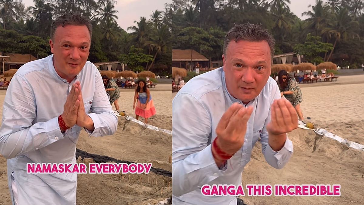 Demonstrating the sand-based creation at the Goa beach, he shared how the colour of water changes when the rivers meet at Prayagraj. "This is the Sangam. So this is the place where 400 millions of people will gather", Nick stated in the footage.