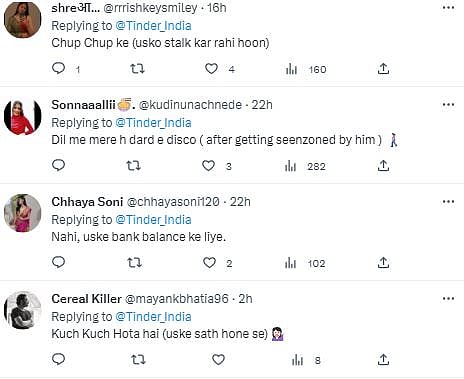 "Dil toh pagal hai (uski attention ke liye)," read the tweet by Tinder India. Yes, those words in the brackets stole the attention of netizens and made them vibe in the filmy nasha. They started replying with their instances of love-shuv and how lyrics from the B'town were relatable.