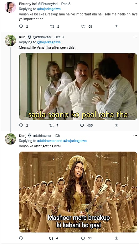 While some suggested it to be staged, several tweets pulled in memes after hearing the break story of Vanshika. Not just it individuals 'enjoy' the case, but also brands like Dunzo made viral tweets out of the trending incident. Also, a Twitter user took to share a video of how Akash would react to the leaked call recording. The footage of Akash's reacting to Vanshika's say seemed was suggested to be an intended prank purely staged for going viral.