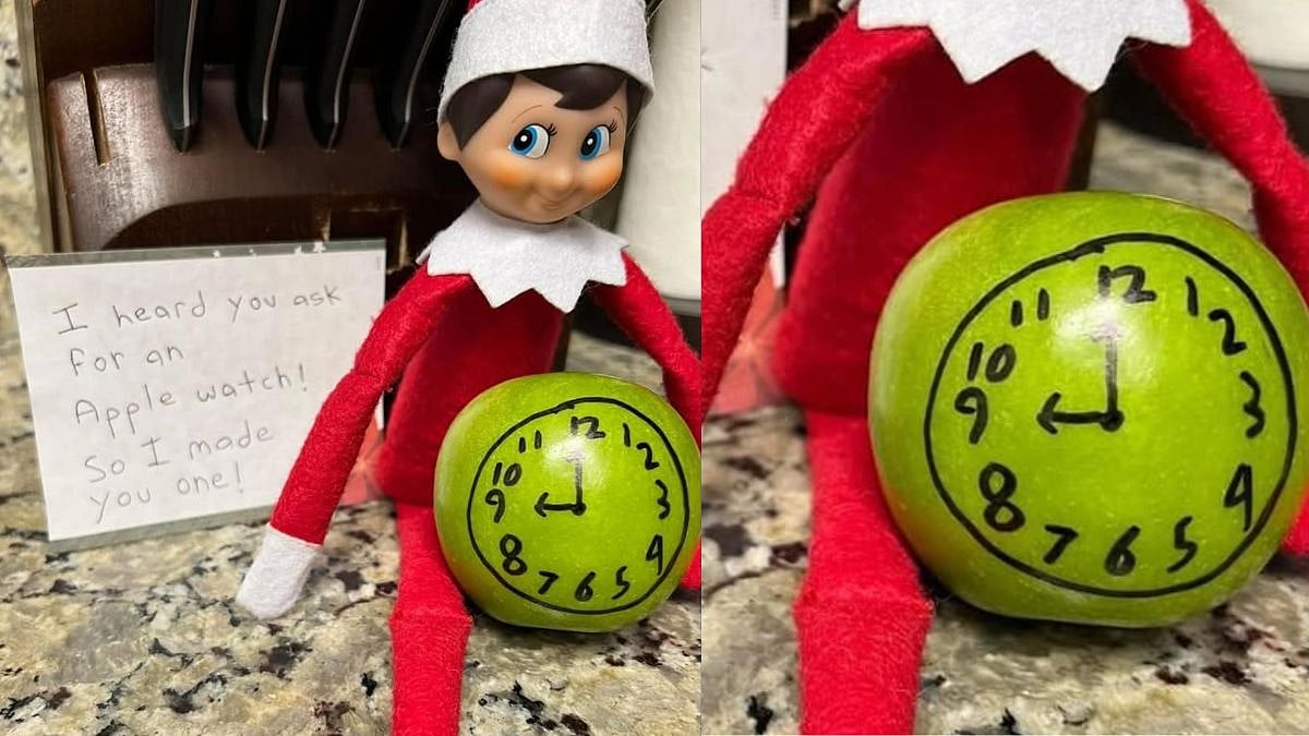 "I heard you ask for an Apple watch! So I made you one", Elf, said to be Santa's helper, left behind a note for the woman as he placed a green apple with clock drawn on it.