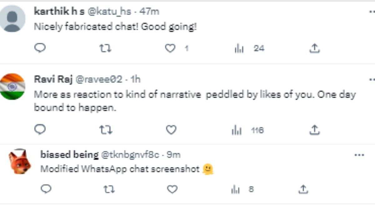 The WhatsApp conversation between the house owner and the house hunter surfaced online, but couldn't be verified. While some claimed it to be a case from Bengaluru, others slammed it to be fabricated to spread hate. "Stop peddling fabricated WhatsApp chats," said a Twitter user from IIM Bangalore.