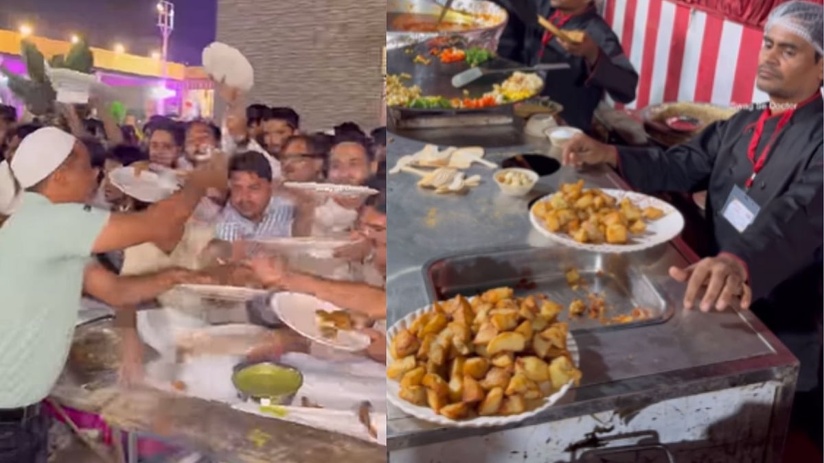 A food blogger from Delhi uploaded a video of wedding guests enjoying food at the celebration by rushing to the non-vegetarian side and leaving the staff at the veg counter idle. The video showed people flooding the meat corner for some barbeque and fine grills, not craving for potatoes an veggie snacks.