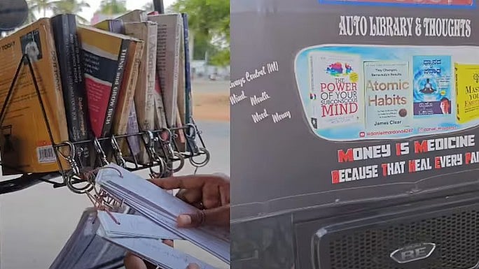 The viral video features an auto-rickshaw transformed into a small moving library designed to keep passengers engaged during their journey. Instead of a regular passenger setup, the auto is stocked with books neatly arranged for commuters to read while travelling.