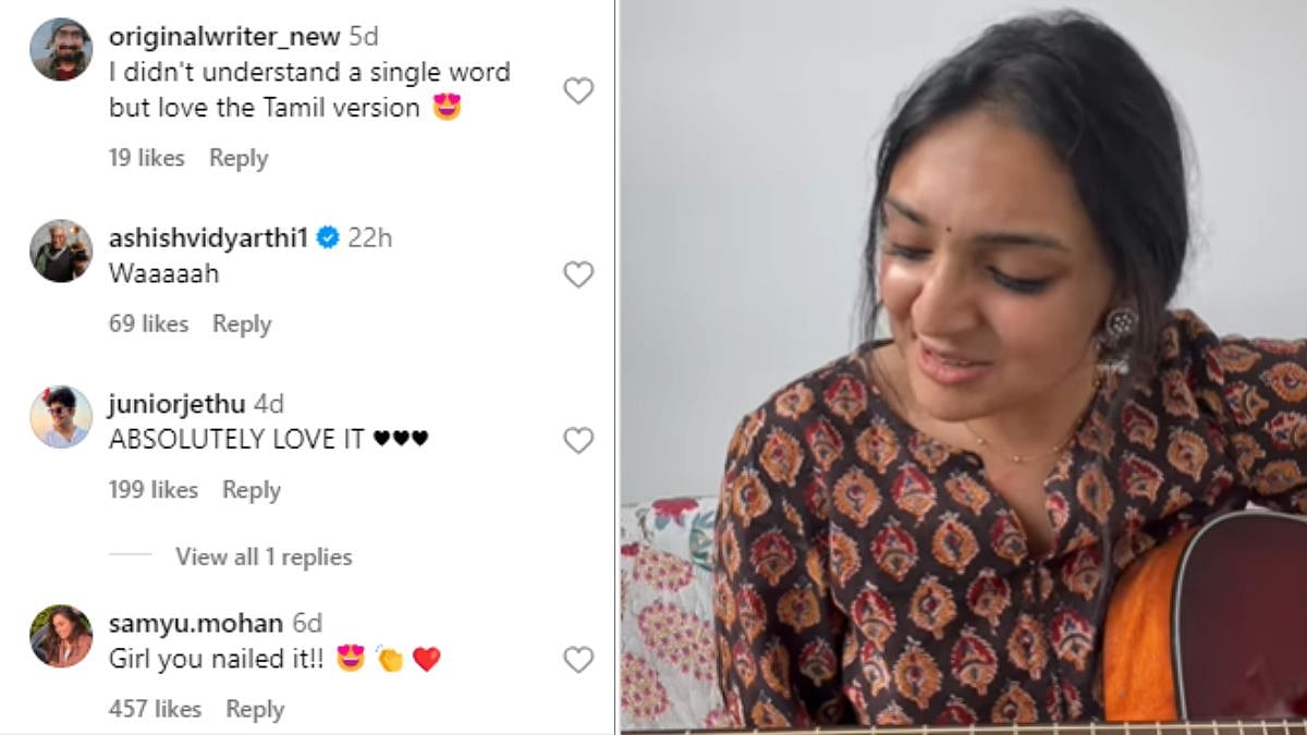 So far, the video has attracted more than a million views on the content-sharing site. Hundreds of people lauded the Tamil version created by the Instagrammer. "Girl you nailed it," echoed the voices of netizens in reply to the music video gone viral. Actor Ashish Vidyarthi also gave it an ear and praised the rendition. "Waaaaah," read his comment. Non-Tamil speakers too loved it and said, "I didn't understand a single word but love the Tamil version."