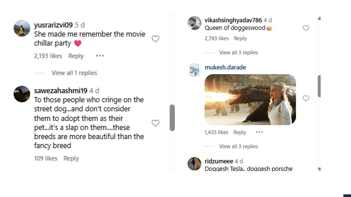Previously, netizens had dubbed her video “real Z+ security”, referring to the sight of at least six dogs forming a protective circle around her while she rode one like a little horse.