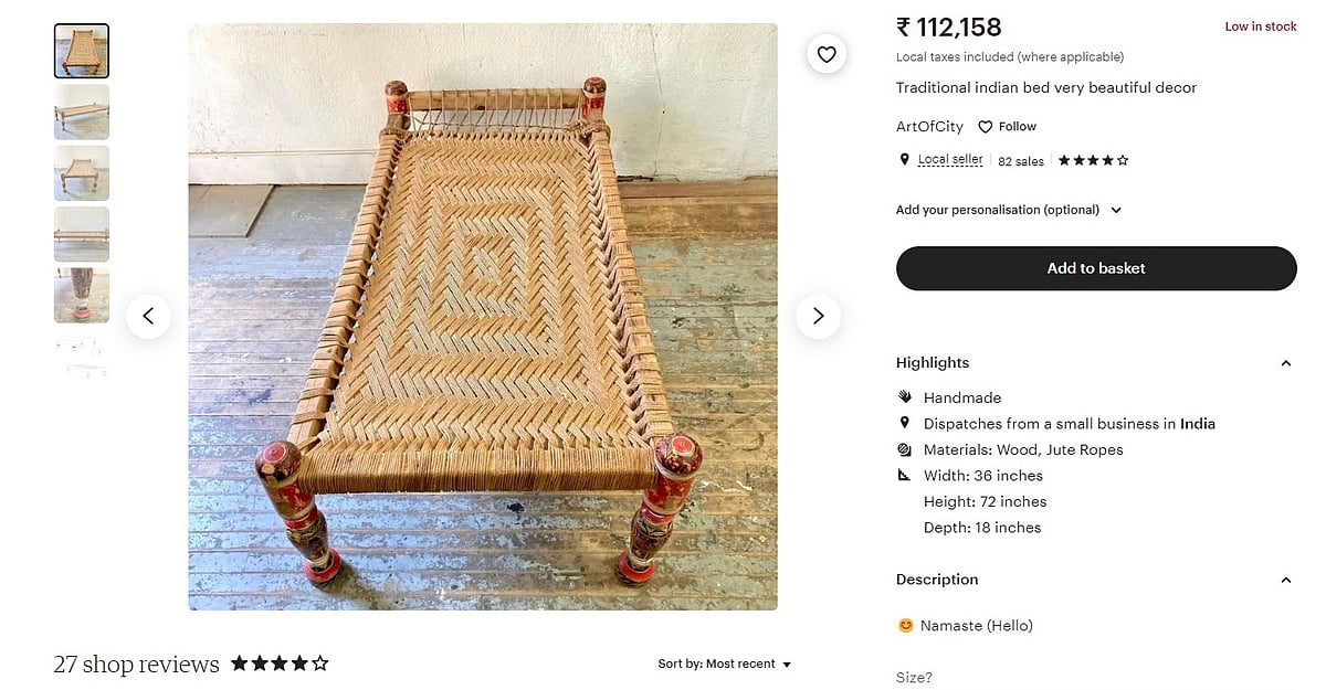 This American website features items that have been priced this high, including this charpai and many more. This charpai is being sold by an India-based shop and is currently in limited supply, with the item already added to about 6 baskets.